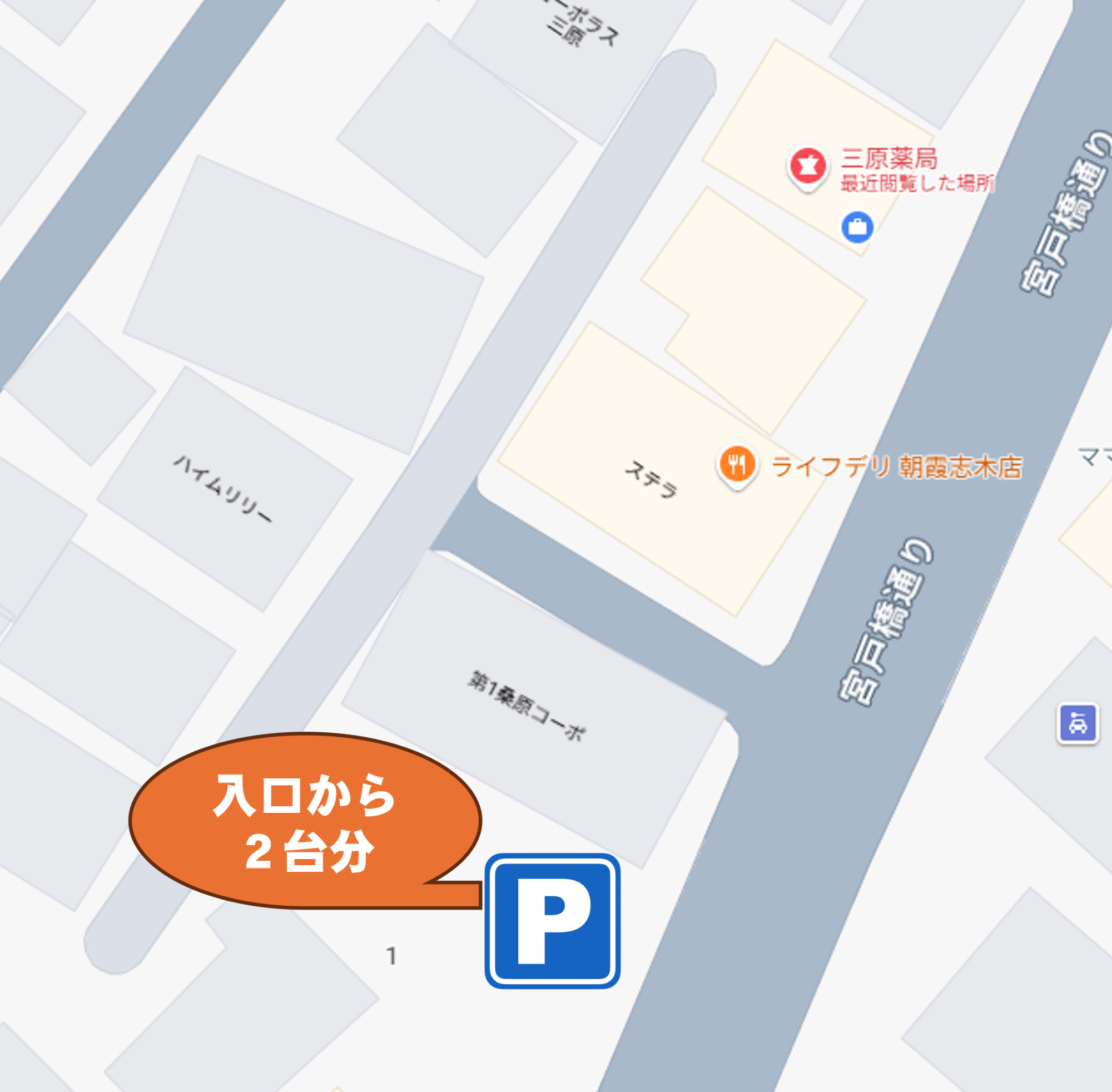 | 駐車場 | 有 2台 (下記地図記載) |